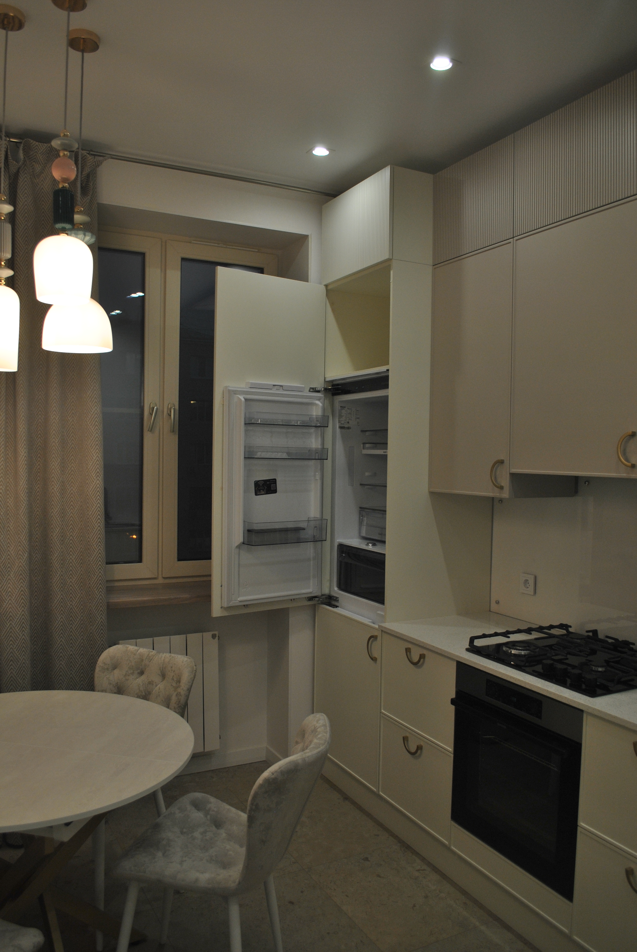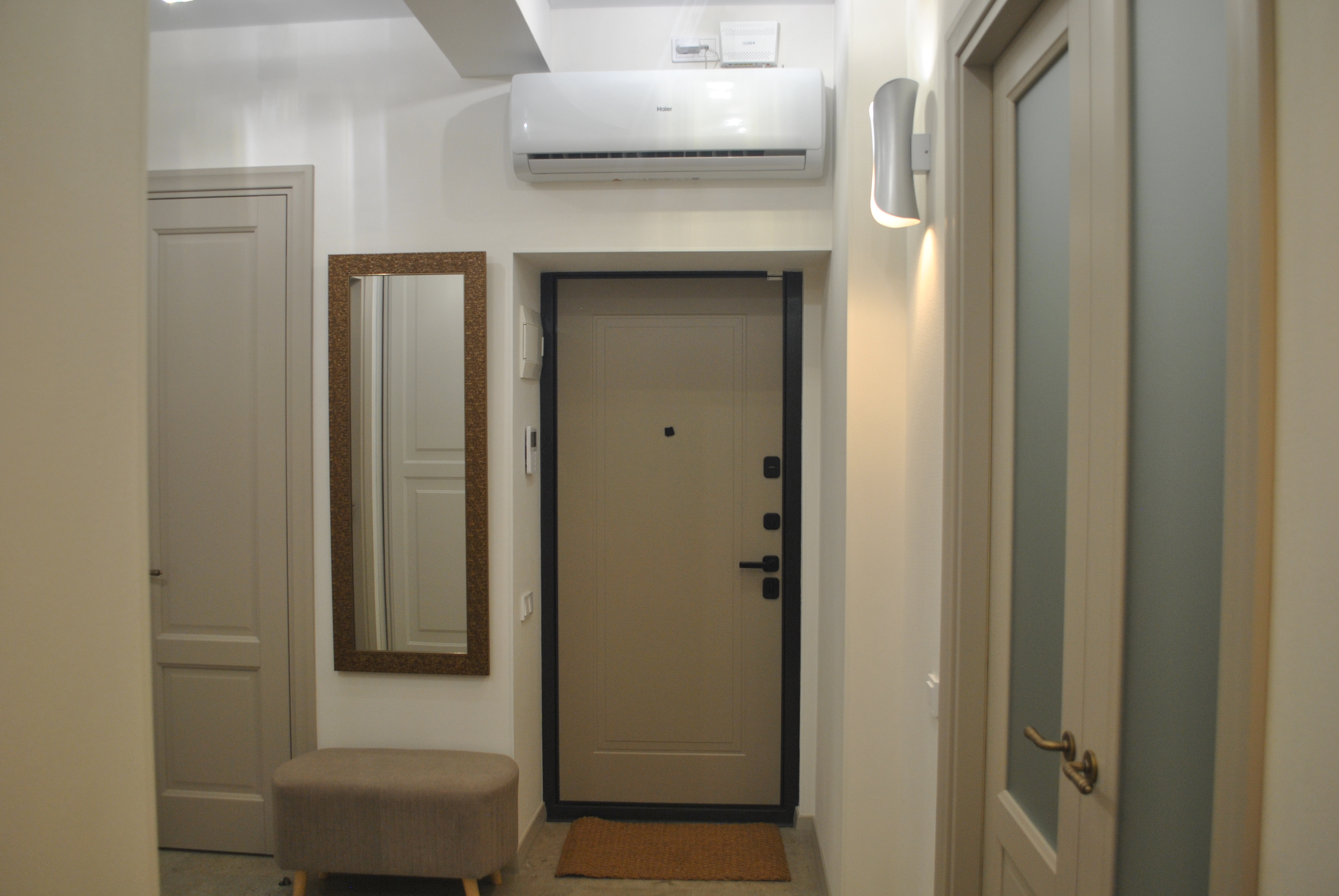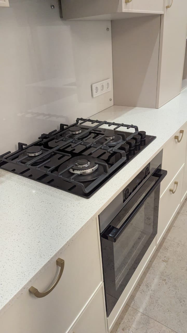 Квартира оснащена видеодомофоном с режимом улица-площадка у двери. Интернетом. Кондиционерами. Системой охраны Росгвардии. Кухня со встроенной техникой (угольная вытяжка, холодильник с морозильной камерой с выходом в интернет, посудомоечная машинка). Плита газовая, духовой шкаф электрический. Кухонный стол со стульями. Стиральная машинка с сушкой. Электрический резервный бойлер горячей воды на период летних плановых отключений. «Мокрые» помещения оснащены системой блокировки подачи воды при протечках.